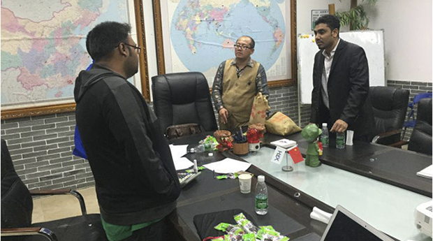 匯利興集團(tuán)鐘董與孟加拉客戶商洽電視機(jī)組裝線