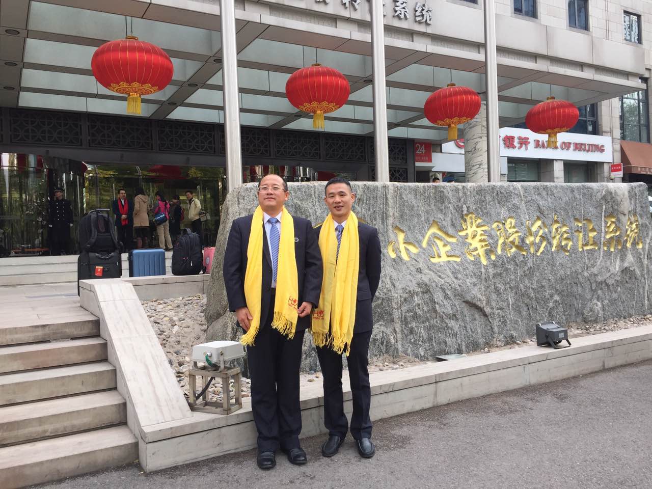鐘輝董事長(左)與重慶公司胡偉路總經(jīng)理(右)在全國中小企業(yè)股份轉(zhuǎn)讓系統(tǒng)大廳前合影