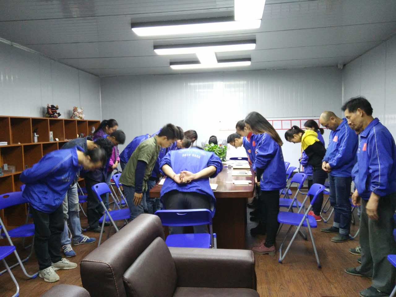 會(huì)議召開前夕,全體員工向企業(yè)三道(商道、孝道、人道)行三鞠躬