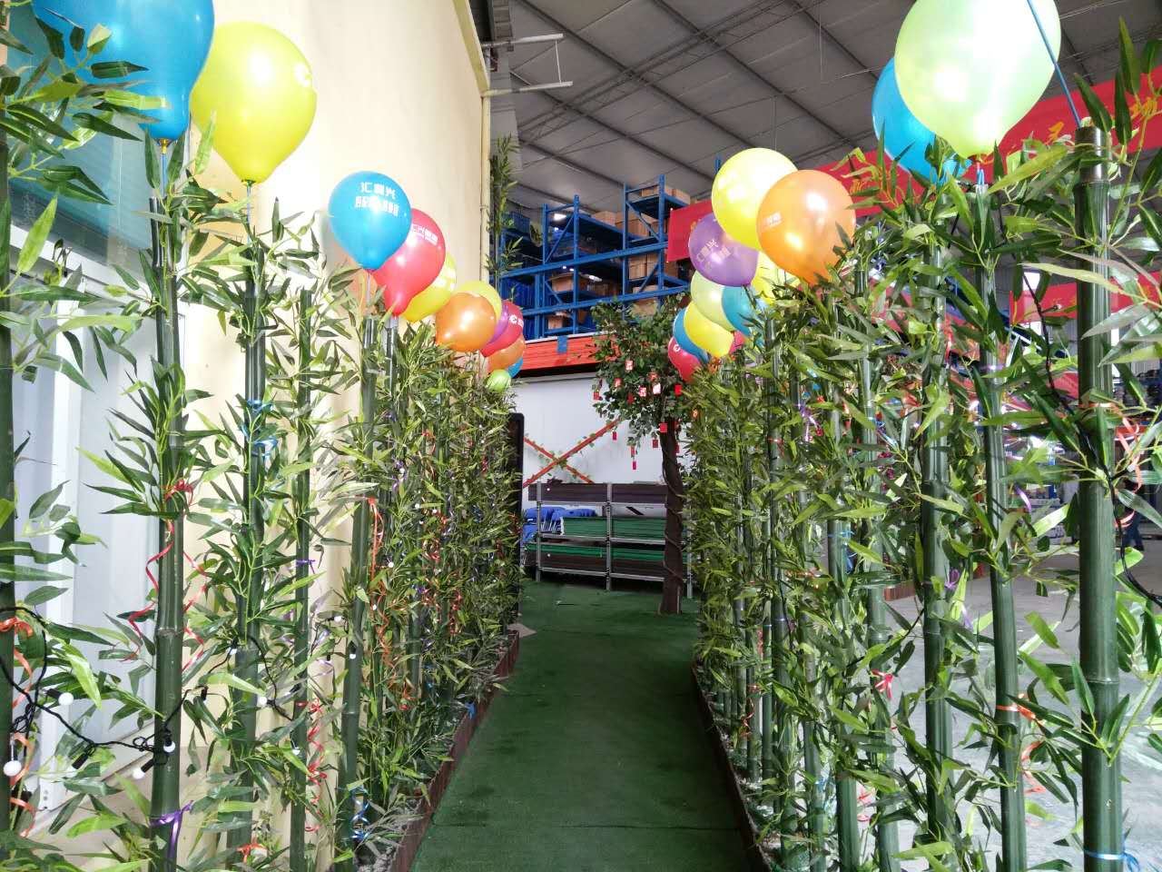綠草青竹有著無顏六色的彩帶與氣球兒的點(diǎn)綴成為了一顆璀璨耀眼的明珠,一個(gè)“世外竹源”。