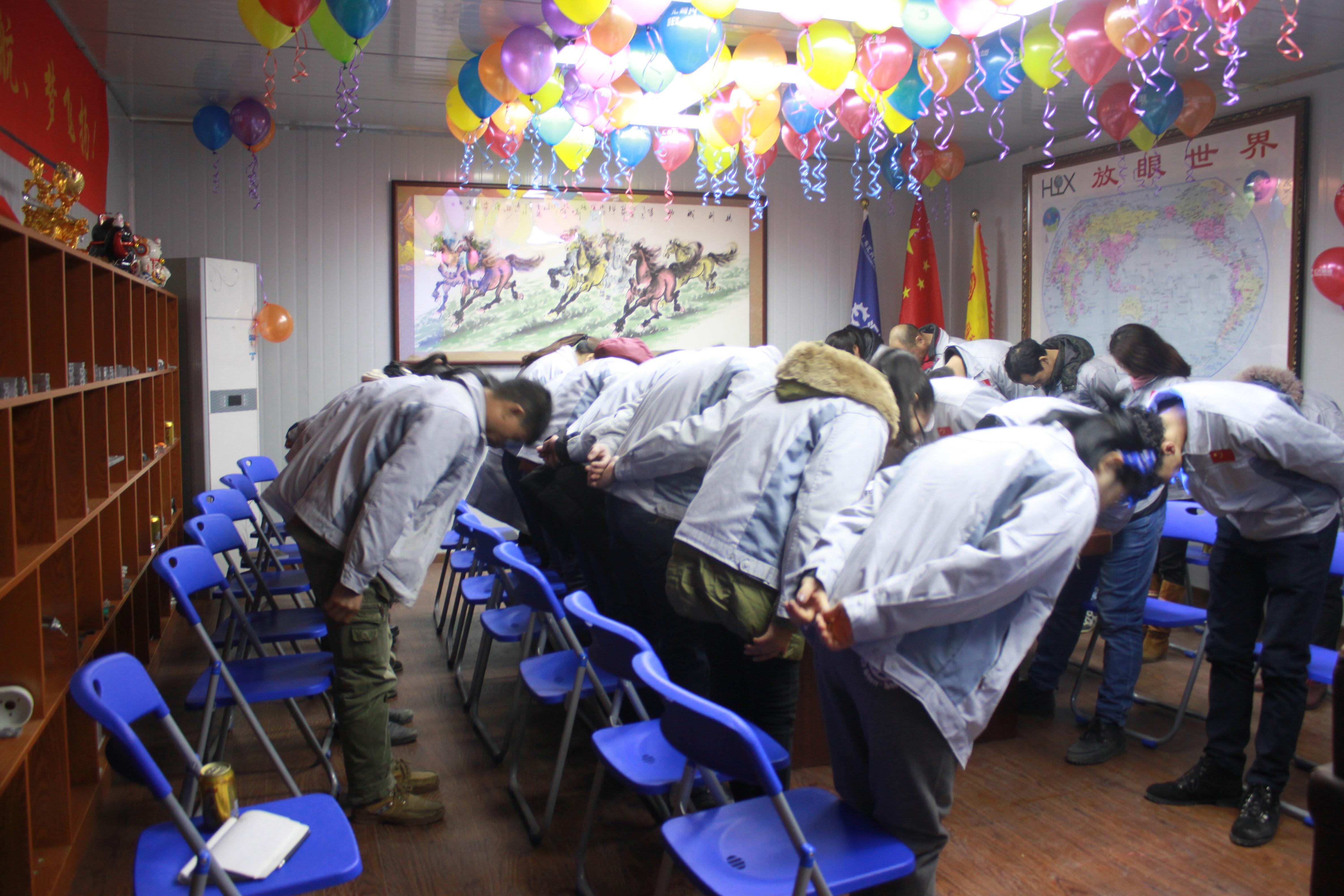 會議召開前對企業(yè)三道(人道、孝道、商道)行三鞠躬
