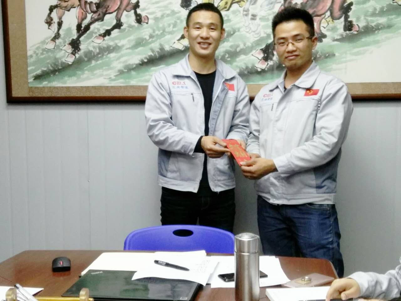 會(huì)議召開時(shí)圖貌 會(huì)上,胡總主要以內(nèi)外結(jié)合的方式對(duì)公司發(fā)展進(jìn)行了相應(yīng)的分析及解讀,并提到公司發(fā)展之路----IPO主板之路,我司平臺(tái)、品牌、軟實(shí)力的雄厚;進(jìn)而著重說到公司的“倍增計(jì)劃”及內(nèi)部員工KPI考核、6S管理等制度,并表示一個(gè)企業(yè)的發(fā)展是贏在轉(zhuǎn)折點(diǎn)而不是起點(diǎn)同時(shí)期望每個(gè)人用心去做好每件事情,多細(xì)心、多仔細(xì),進(jìn)而提到公司一系列相關(guān)福利及部門獎(jiǎng)。 胡偉路總經(jīng)理(圖左)與月度之星張國桃戰(zhàn)士(圖右)同框合影 月度之星進(jìn)行的也有一個(gè)季度的年輪了,隨著時(shí)間的洗禮也徜徉著一份責(zé)任也彰顯了一份愛,對(duì)家及家人的一份愛,但就是由于這份責(zé)任與愛讓大家緊連著心、團(tuán)結(jié)一致去努力。對(duì)于“張國桃”戰(zhàn)士的奉獻(xiàn)與努力,對(duì)于他的默默奉獻(xiàn)及關(guān)懷,大家早已銘記于心并十分感激,同時(shí)在此也感謝他對(duì)于公司及同事的無私奉獻(xiàn)及默默關(guān)懷。