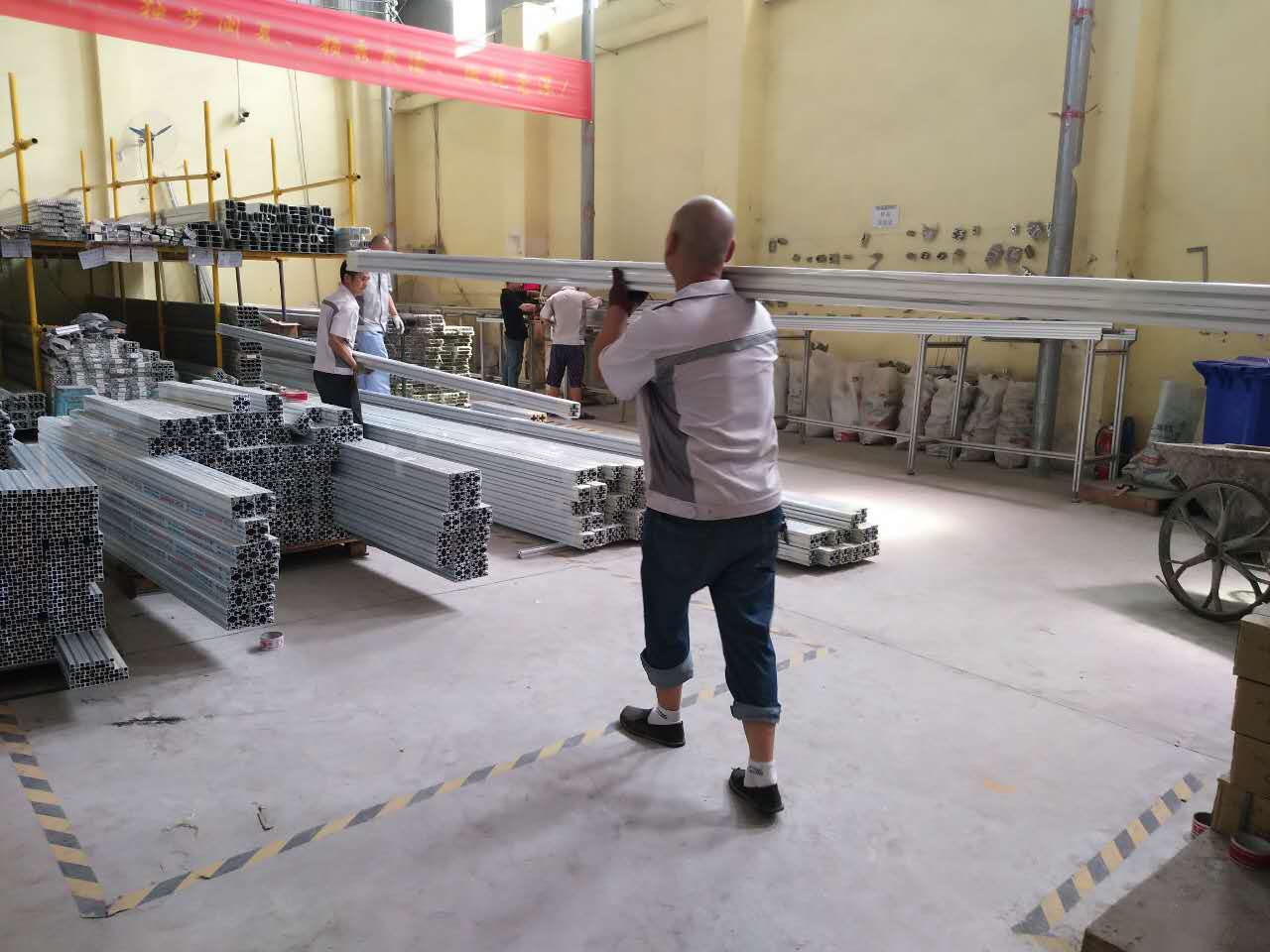 “大河向東流哇,天上的星星參北斗哇”,伴隨著兄弟豪氣沖天的勁,匯利興兄弟們?cè)礁稍狡饎?,接二連三的大貨車,進(jìn)出有序的鋁型材,腳下勤快的步伐根本停不下來。有人說成功不是一個(gè)人的,是大家的,所以匯利興戰(zhàn)士們團(tuán)結(jié)協(xié)助,向著我們的目標(biāo)不斷前進(jìn)。