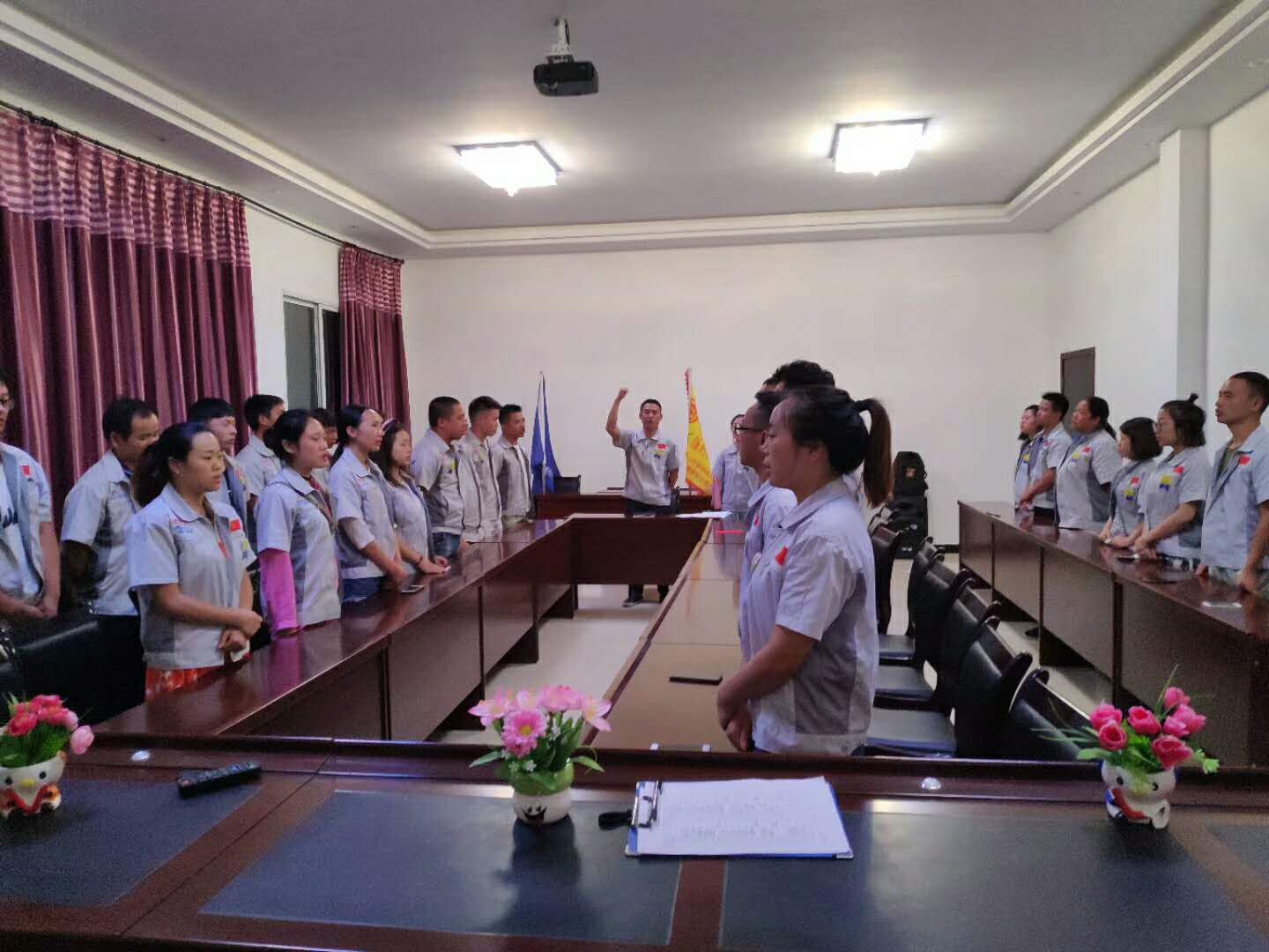 會議開始前,全體員工整肅衣冠 ,對匯興人倍加推崇的“三道文化”(孝道、商道、人道)鄭重地鞠躬,莊嚴宣誓企業(yè)精神“用情做人、用心做事”,團隊精神“忠誠團結、勤奮進取”,隨后會議正式開始,由各部門主管相應作7月份總結,總結得與失,有則改之無則加勉;由張副總做總結,表示團隊的力量及每個部門每個人的責任與擔當,希望大家像拔河一樣緊拽著繩索不放棄,永創(chuàng)佳績、積極向上,此后行政主管陳香草宣讀公司相關規(guī)章制度及福利事宜,最后胡總勉勵大家個人的成功不算成功,團隊的成功才算成功并表示匯利興的團隊是最棒的團隊。