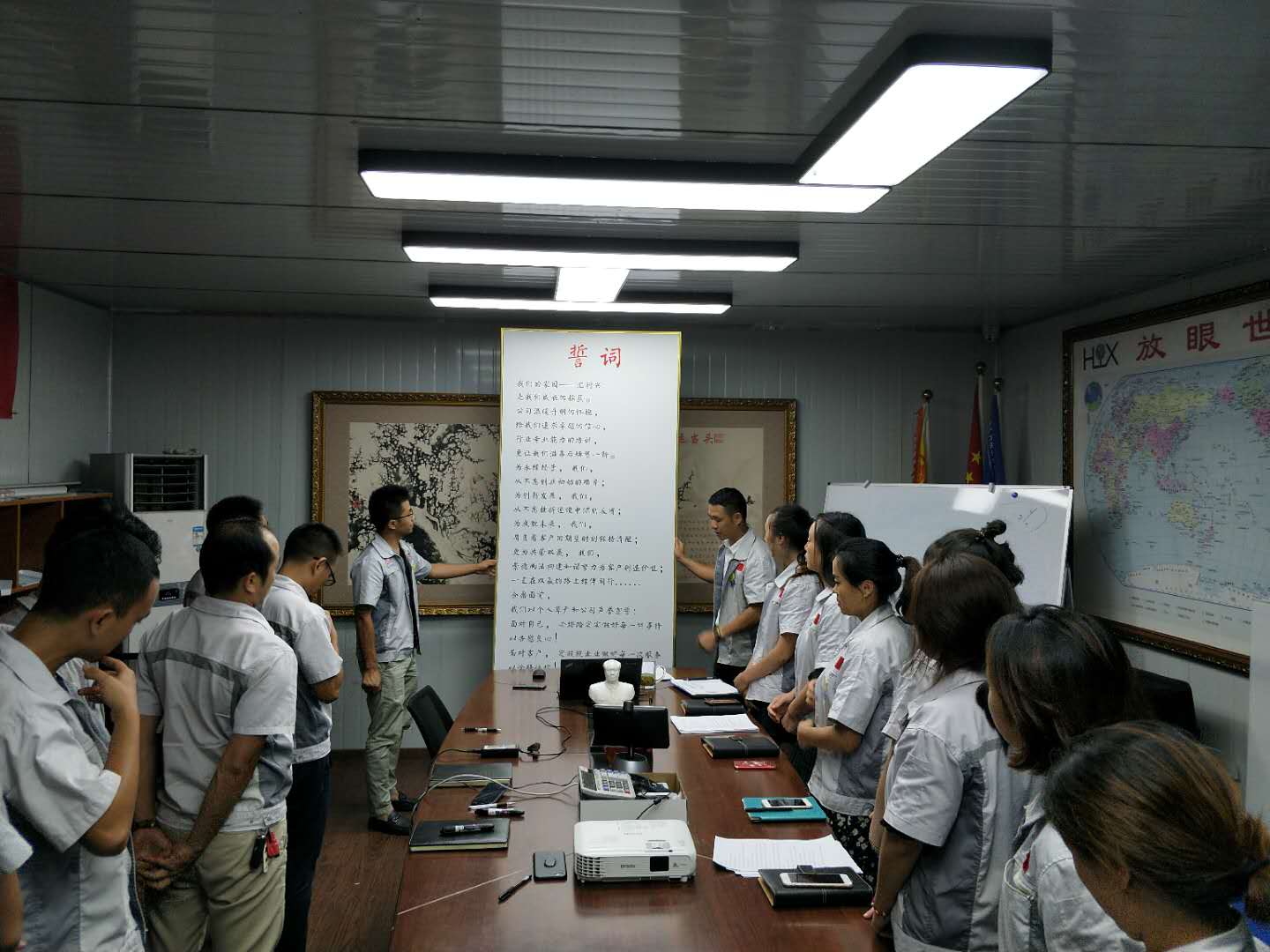 敢于做先行者,開天下萬物之先河。8月31日晚,我司精英們集體在匯利興學(xué)校開展隆重而莊嚴(yán)的宣誓會(huì)議,并在誓詞上簽署自己的名字,同匯利興一起共前行,正如誓詞所言“我們的家園-匯利興,是我們成長的搖籃......以個(gè)人的尊嚴(yán)和公司聲譽(yù)宣誓,面對自己,必踏踏實(shí)實(shí)做好每一件事情,以告慰良心;面對客戶,定兢兢業(yè)業(yè)做好每一次服務(wù),以詮釋誠信”。不忘初心,一路前行,匯利興始終秉承著“用情做人,用心做事”的企業(yè)理念,踏實(shí)而務(wù)實(shí)的做好每一件事,忠誠團(tuán)結(jié)、勤奮進(jìn)取。