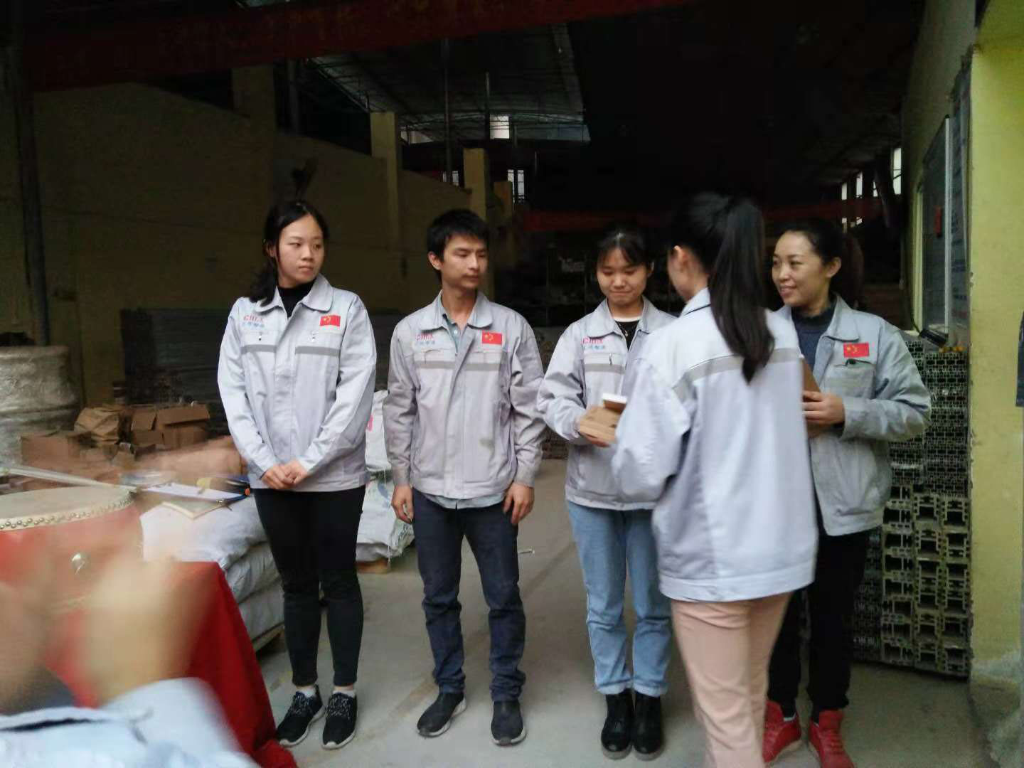 擊士氣鼓,士氣比武器更重要圖 為新員工頒發(fā)紀(jì)念品圖 第二項(xiàng)議程:優(yōu)秀部門,優(yōu)秀員工評(píng)選。相信每個(gè)公司里都會(huì)有這么一群人,他們在各自的崗位上堅(jiān)定信念,恪守職責(zé),認(rèn)真,細(xì)心,全身心的投入工作,完成崗位職守,匯利興稱之為月度之星/季度之星。然本季度部門“采購部”季度之星為“熊學(xué)斌和姜英”兩位家人,在此祝賀及感謝兩位家人的付出與努力,希望你們不負(fù)眾望,再創(chuàng)佳績,同時(shí)也非常感謝每位家人對匯利興做出的奉獻(xiàn)與努力,希望大家在接下來的工作中再接再厲,共創(chuàng)美好匯利興。