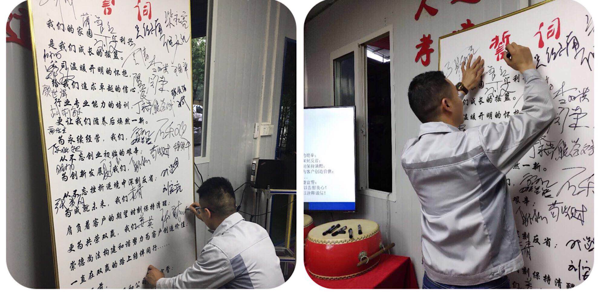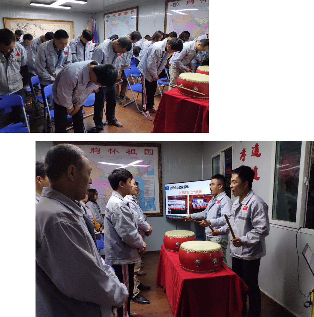 會議第二項議程,企業(yè)文化的展示。全體匯興人整肅衣冠對匯興人倍加推崇的“三道文化”(孝道、商道、人道)鄭重地鞠躬,莊嚴宣誓企業(yè)愿景:“成為全球領先的智能自動化產(chǎn)業(yè)鏈集成服務商”,企業(yè)使命:做受尊敬的好人,造受尊敬的產(chǎn)品,辦受尊敬的企業(yè),建受尊敬的平臺,企業(yè)精神“用情做人、用心做事”,團隊精神“忠誠團結(jié)、勤奮進取”,工匠精神:創(chuàng)于手、精于工、智于器、匠于心、品于行,行為準則:口中有德、目中有人、手中有技、心中有愛、行中有善,職業(yè)準則:對工作熱臉、對同事笑臉、對錯誤紅臉、對浪費黑臉、對榮譽爭臉。隨后二位核心精英擊士氣鼓,士氣比武器更重要,現(xiàn)場氣氛熱烈、振奮人心。