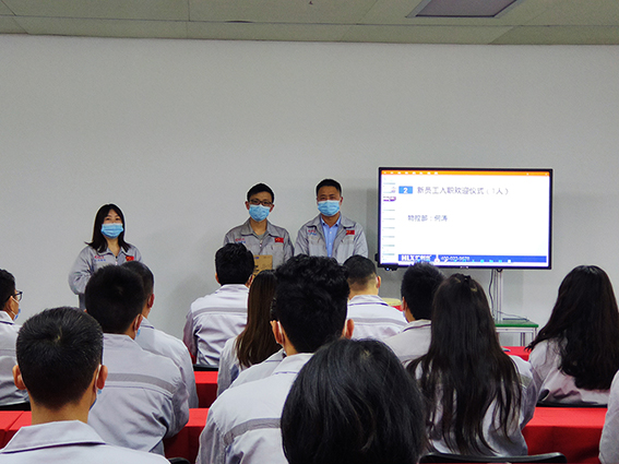 會(huì)議第二項(xiàng)議程,新員工入職歡迎儀式。由常務(wù)副總徐總親自為新入職員工頒發(fā)紀(jì)念品。為公司注入新鮮血液,為團(tuán)隊(duì)帶來新的生機(jī)和活力。