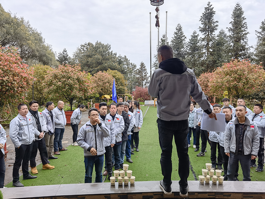 從廠區(qū)出發(fā),大約1小時30分我們就達到當(dāng)?shù)氐霓r(nóng)家樂,大家小憩一會兒后,正式展開了我們本次的團建小游戲,分別是氣球運杯子、斗雞、拔河、多人多足等。