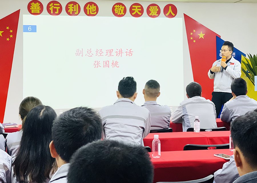 常務(wù)副總經(jīng)理張國桃發(fā)表工作感言。張副總對2021年三季度工作進行回顧,對公司業(yè)績的增長表示肯定,分析了部分工作未完成的主要原因和關(guān)鍵要素,進一步對后期工作作了如下要求:一、銷售致勝,業(yè)績?yōu)橥?,全員營銷,加大績效產(chǎn)出;二、強化客戶幸福指數(shù),為客戶創(chuàng)造效益;三、幫助新生力量,快速融入團隊;四、增強危機意識,確保安全生產(chǎn);五、注重細節(jié)把控,強化責(zé)任意識,并進一步勉勵全體員工要做一個積極、有正能量的人,像太陽一樣溫暖有光、有力量。