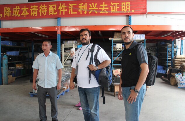 圖為李總親自陪同來(lái)自利比亞的MUSTAFA先生與其搭檔參觀生產(chǎn)車(chē)間