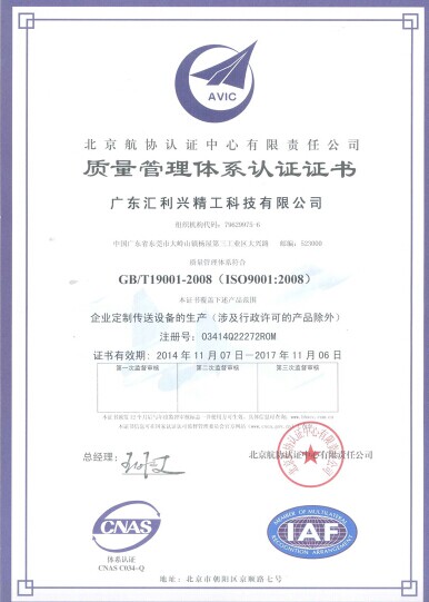 4、匯利興集團(tuán)公司于2014年11月通過(guò)ISO9001:2008質(zhì)量管理體系認(rèn)證;